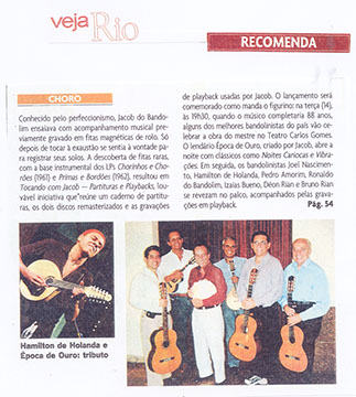 Surgem a cada frase novas linhas sonoras produzidas pelo encadeamento dos violões - o Época de Ouro era o único grupo que utilizava três violões, dois de seis e um de sete cordas - ; os desenhos rítmicos produzidos pelo cavaquinho, pandeiro e percussão, além do perfeito entrosamento, fruto de horas e horas de ensaio comandadas por Jacob, formando um documento de personalidade própria, independente da gravação original, permitindo a sua utilização como matéria prima refinada no ensino musical do Choro.